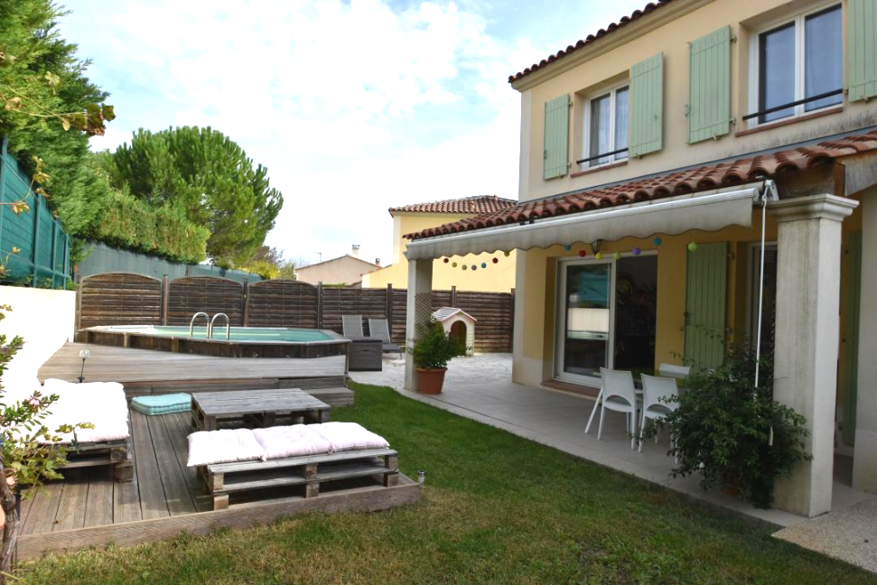 En Exclusivité, sur la commune de ROUSSET, dans un lotissement, belle villa récente d'environ 100M2 composée de 5 pièces, comprenant, une pièce à vivre avec cuisine semi ouverte équipée , avec une belle verrière, climatisations réversibles au rez de chaussée et à l'étage, un toilette, une buanderie accès garage; A l'étage vous trouverez 4 chambres avec placards dont une suite parentale d'environ 17m2 avec salle de bain double vasque et un dressing, une salle d'eau, et un toilette séparé.Vous trouverez une agréable terrasse semi couverte avec son espace jardin et une piscine hors sol. Le tout sur une parcelle d'environ 315M2.Prestations très soignées! A visiter rapidement. DPE C Prix 375 000EUR Honoraires à la chage du vendeur . Mandat N o 2135 Une visite virtuelle sur notre site les 4 chemins de l'Immobilier Renseignements au 06 15 59 15 10 Mme Issoire Céline agent commercial RSAC 844 49 757800014 Tribunal d aix en provence.