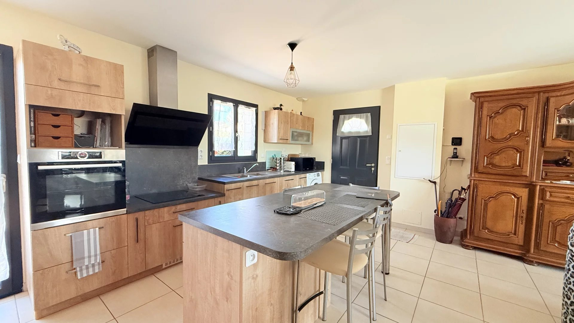 Fonctionnelle et lumineuse, elle se compose d'un agréable séjour avec une cuisine contemporaine entièrement équipée, ouverte sur une superbe véranda anthracite, idéale pour un coin salon cocooning baigné de lumière.
