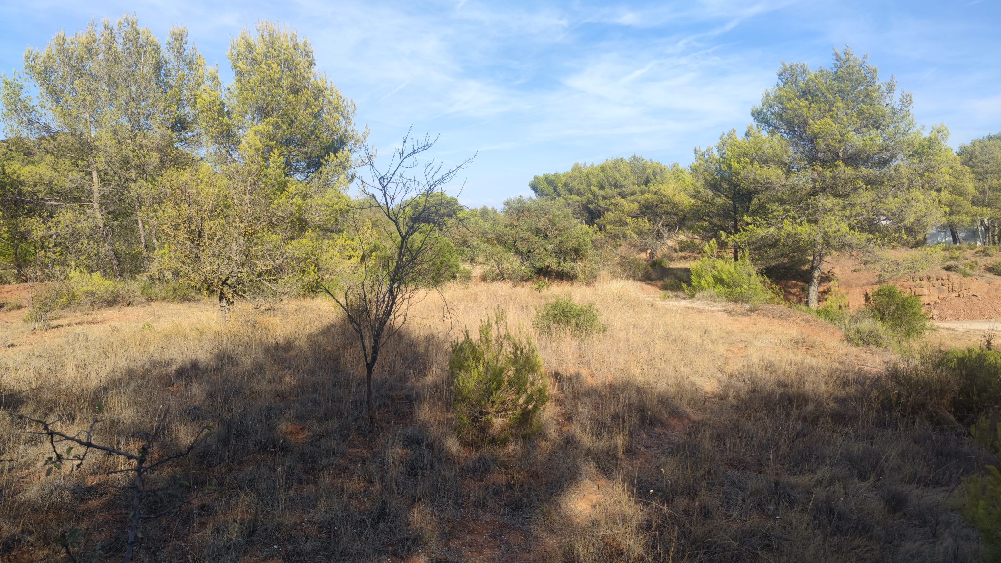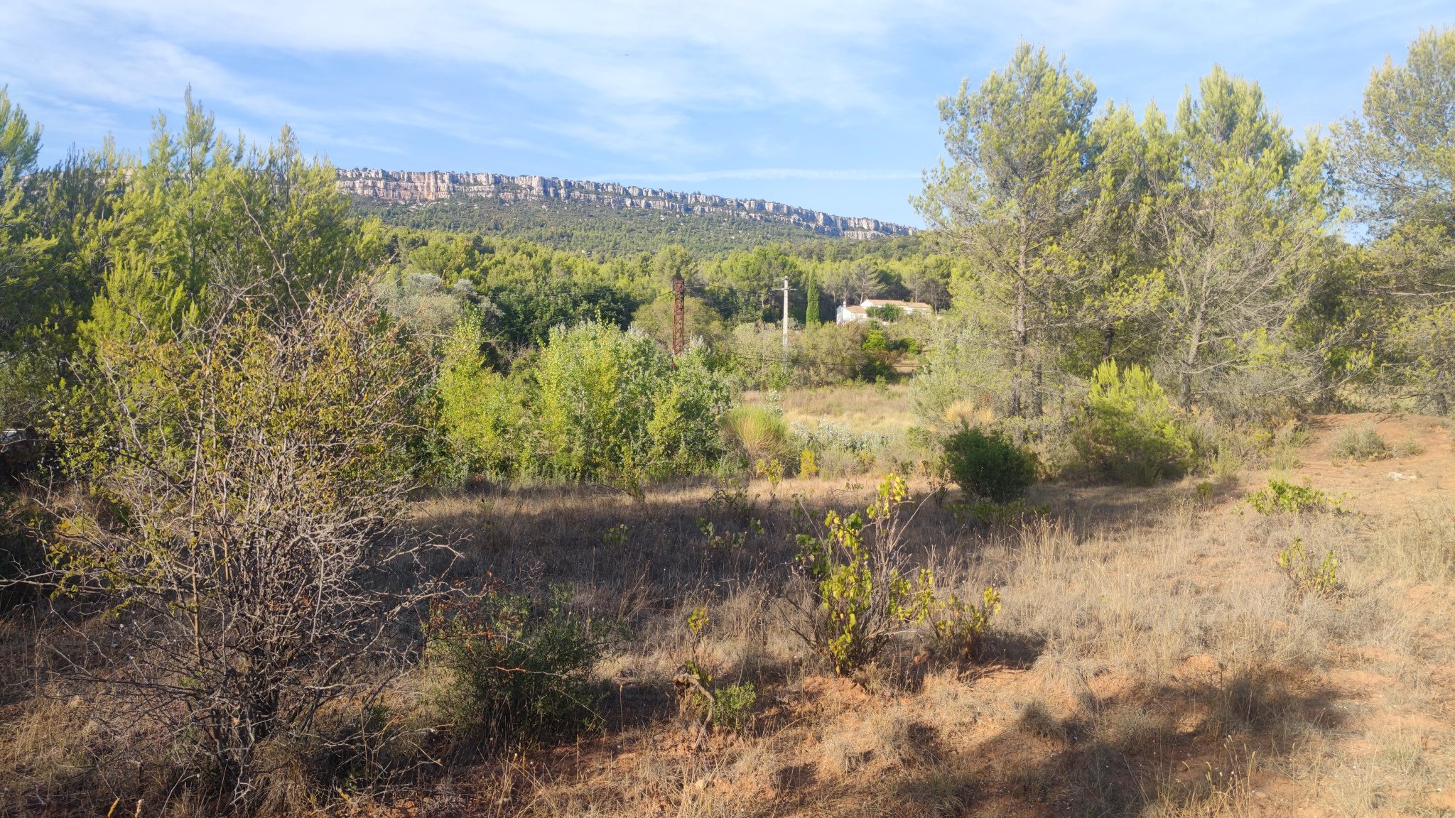 CHATEAUNEUF-LE-ROUGE, très beau terrain constructible à 15 minutes à pied du village et 3 minutes des bus. D'une surface de 1100 m2 avec une belle vue dégagée sur le Cengle et sur la campagne Aixoise, ce terrain viabilisé en bordure ( Eau, électricité et tout à l'égoût ) est libre constructeur, il vous permettra de réaliser une maison d'environ 165 m2 + annexes.