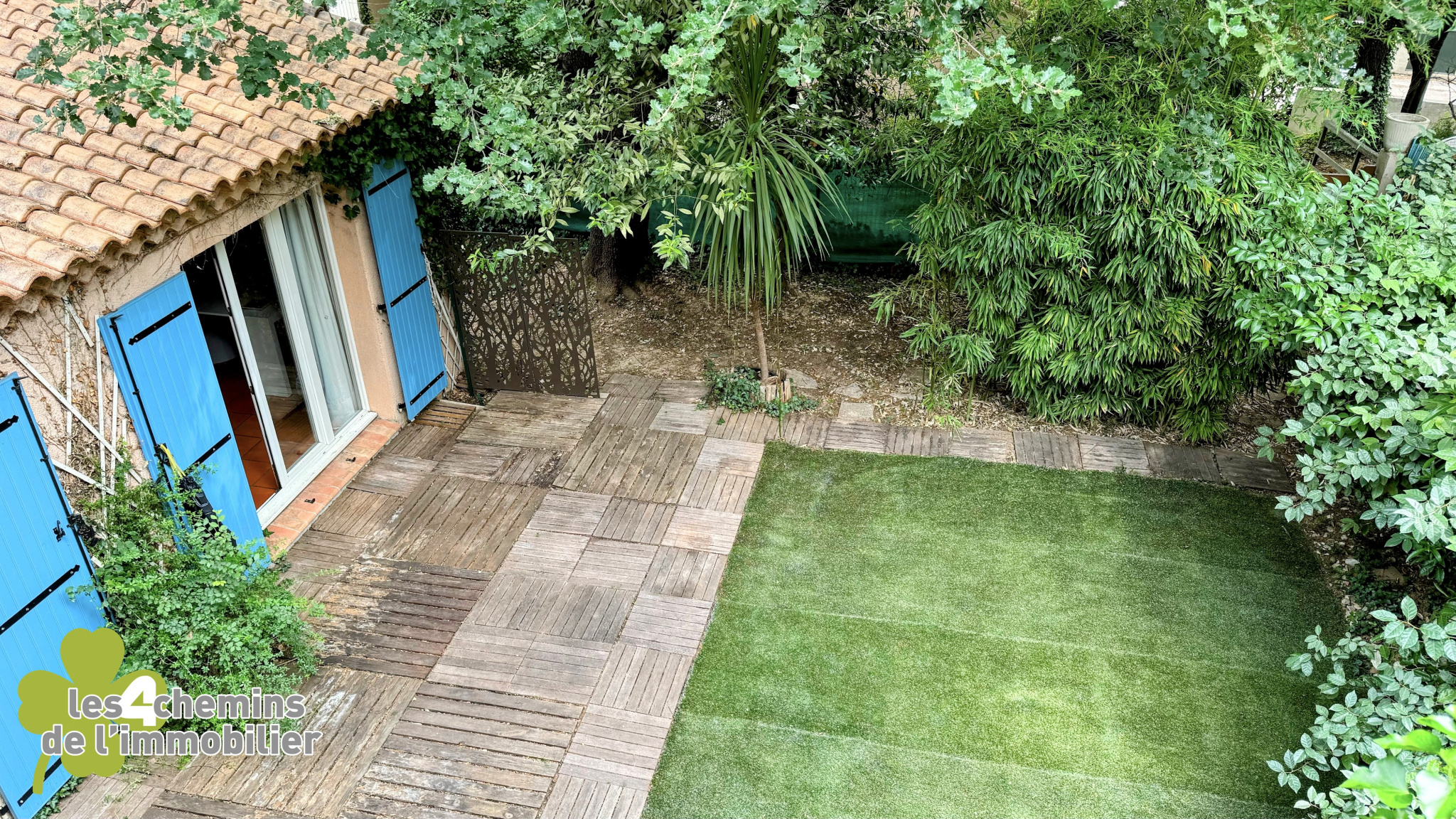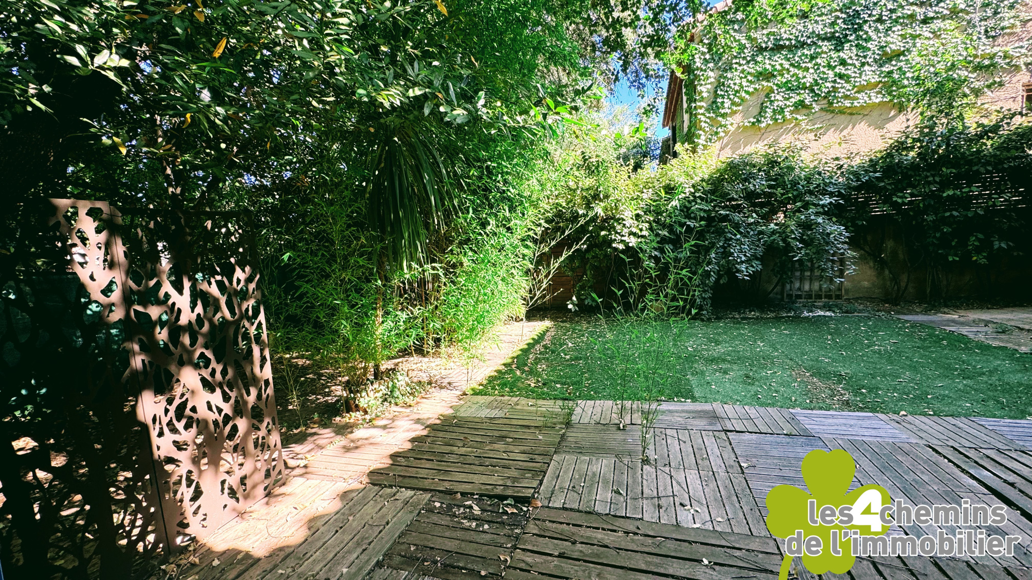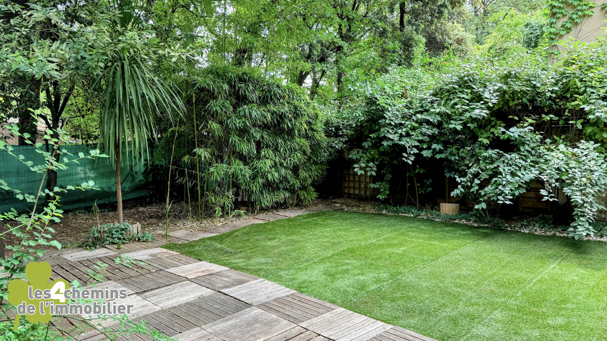 Un jardin entièrement clôturé offrant intimité et sécurité
