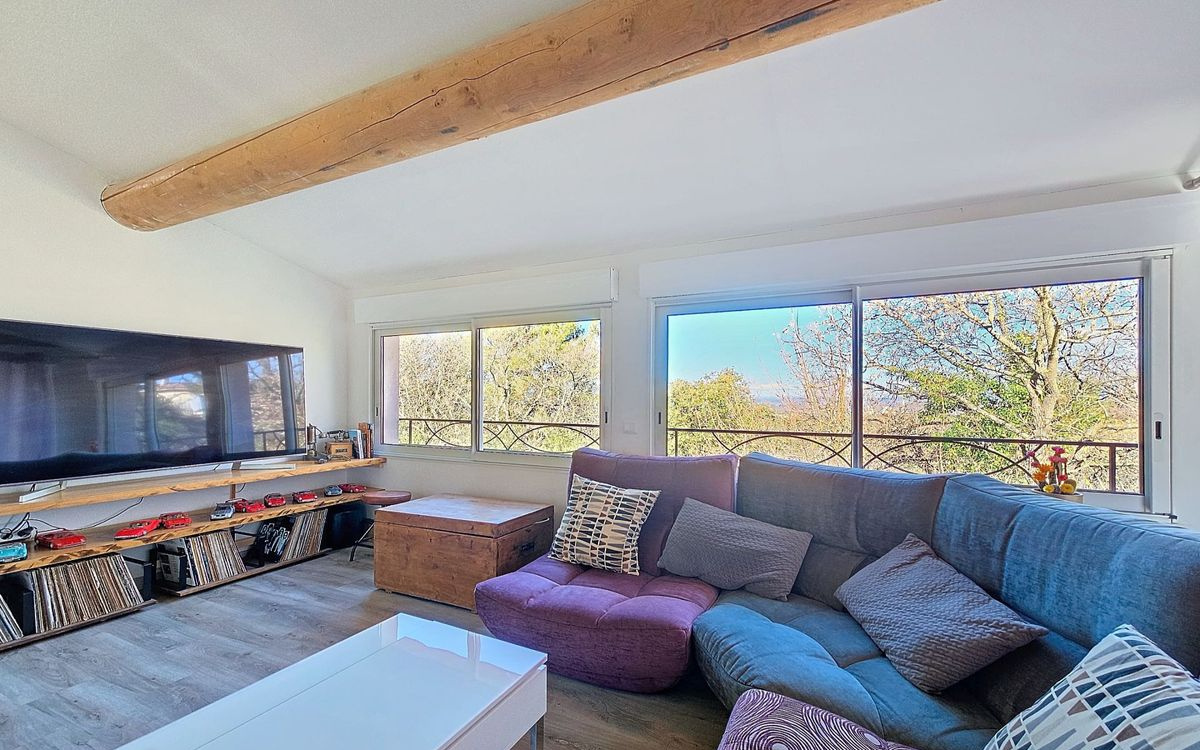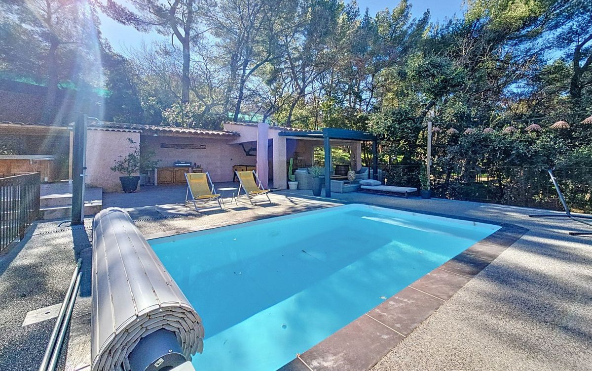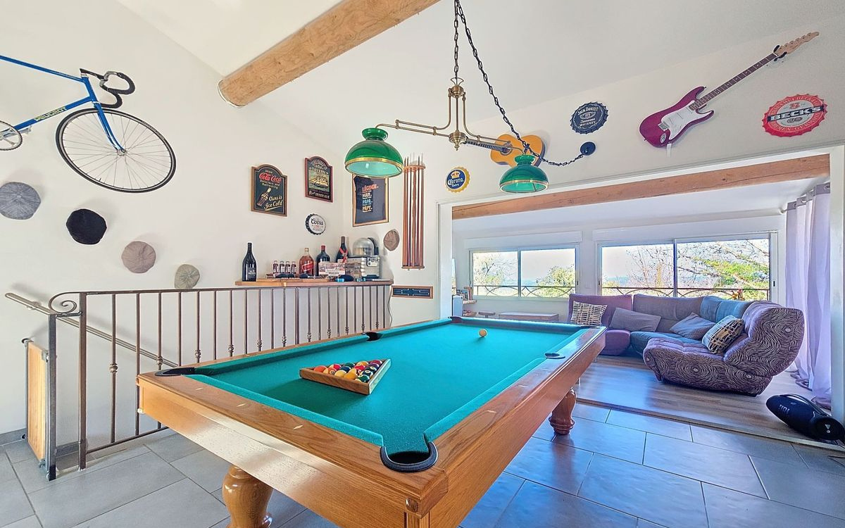 La villa est aujourd'hui organisée en un T3 lumineux côté Est, avec terrasse, et un T4 spacieux côté Ouest, profitant d'un accès direct à tous les espaces extérieurs : terrasse, piscine, cuisine d'été, jacuzzi et boulodrome.
