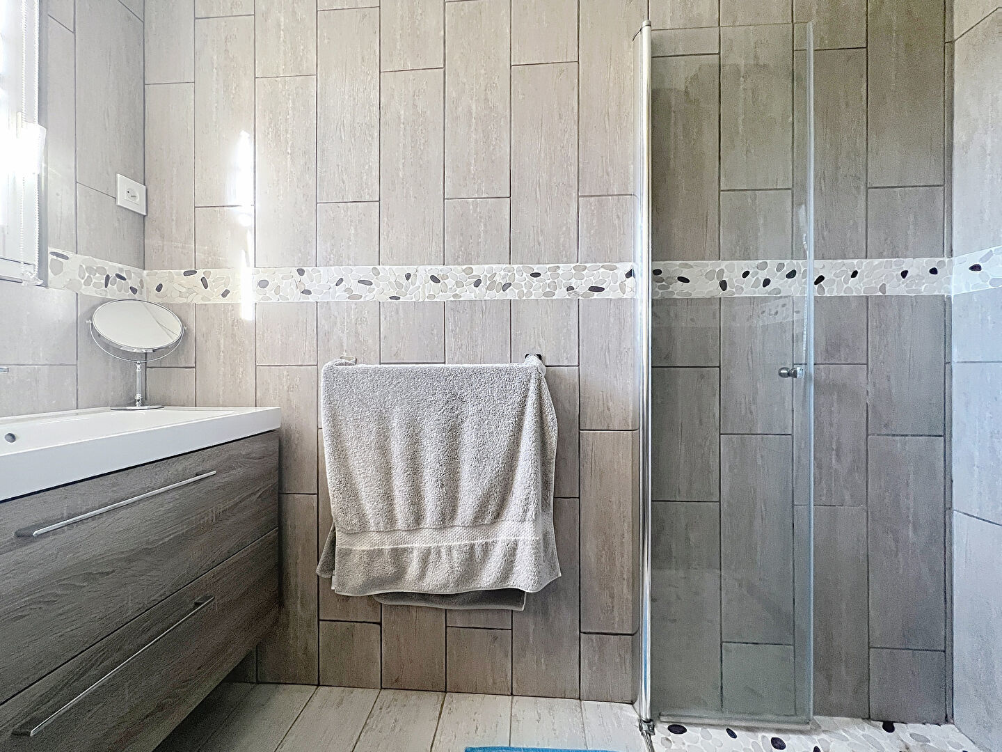 Le studio indépendant, d'une superficie d'environ 30 m2, dispose d'un coin cuisine entièrement équipé, d'une pièce de vie agréable ainsi que d'une salle d'eau et de WC séparés. Idéal pour accueillir famille et amis, il peut également être loué facilement pour un revenu locatif d'environ 650 EUR par mois.
