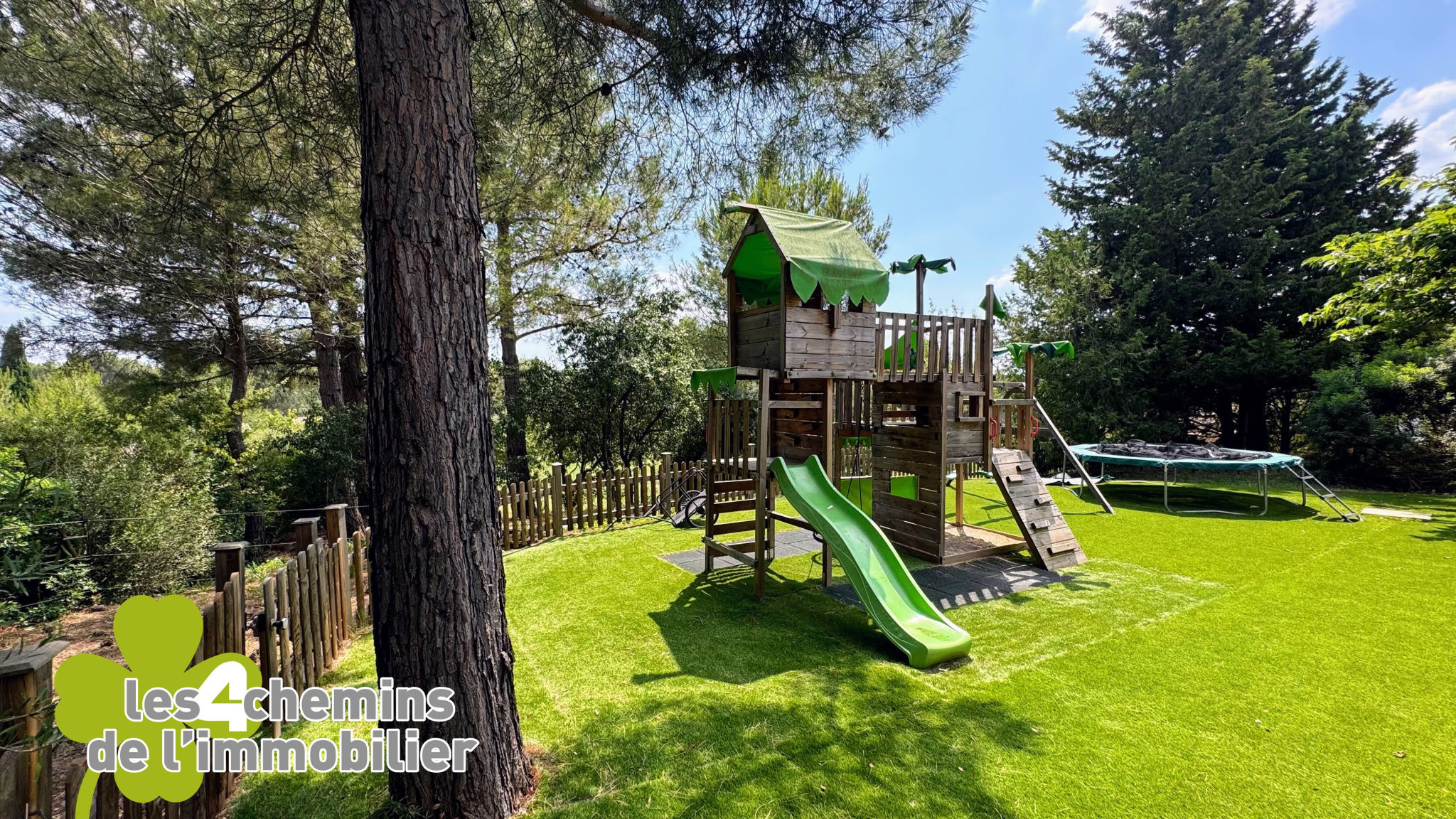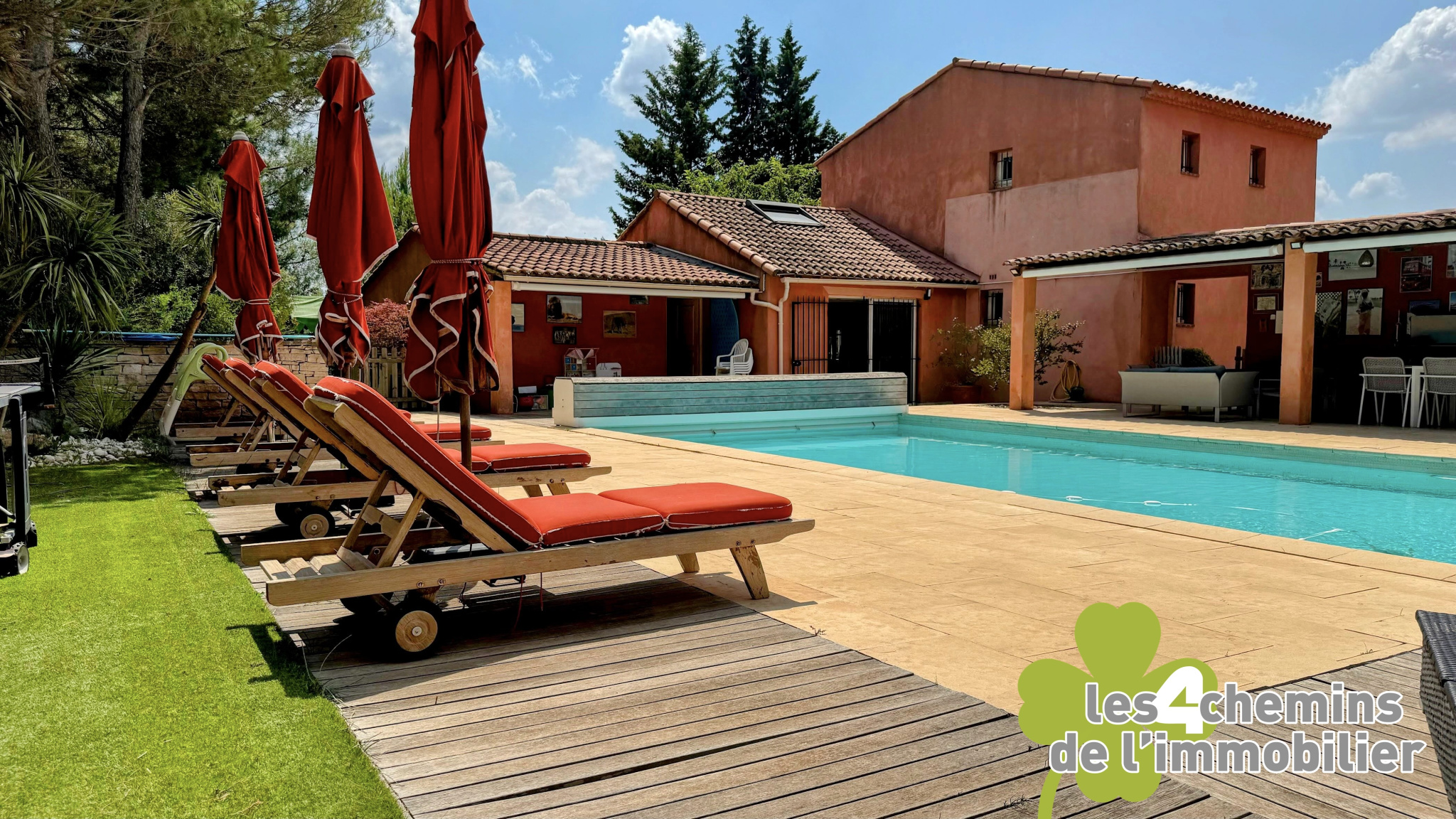 Découvrez cette somptueuse villa provençale nichée sur un vaste terrain paysagé de 4709 m2 à Châteauneuf-Le-Rouge (13790). Idéalement située, cette propriété exceptionnelle offre des prestations de qualité et un cadre de vie paisible et luxueux. Vous serez séduit par ses prestations conviviales pour le loisir de toute votre famille ou chacun trouvera son bonheur sportif ou détente grâce à sa grande piscine et son immence pool-house pour la détente, sa grande salle de sport avec sauna, son beau jeu de boule ombragé, sa salle de cinéma en sous-sol et une grande cuisine extérieure entièrement aménagée avec four à bois pour cuisiner en famille. Cette maison est idéale pour une résidence secondaire en Provence ou pour une habitation principale en campagne proche du centre ville d'Aix-En-Provence. Caractéristiques de la Villa : Surface du terrain : 4709 m2 Parking : Grand parking avec un car-port double voitures Piscine et Pool-House : Superbe coin piscine avec un grand pool-house, cuisine entièrement équipée et une grande plage permettant de nombreux transats Terrasse : Terrasse ombragée côté Sud avec un jardin pelousé Agencement Intérieur : Rez-de-Chaussée : Vaste hall d'entrée avec dressing Salon avec cheminée, ouvrant au Sud sur la terrasse et le jardin Cuisine indépendante aménagée Cellier Coin nuit avec deux chambres, une salle de bain, WC indépendant Grande salle de sport avec salle d'eau Étage : Deux chambres Salle de bain Bureau Sous-Sol : Salle de cinéma Buanderie Confort et Équipements : Climatisation réversible avec pompe à chaleur Fenêtres double vitrage Prestations de haute qualité Cette maison allie parfaitement charme provençal et modernité. Elle vous séduira par ses espaces généreux, ses équipements de qualité et son cadre enchanteur. Contact : Pour plus d'informations ou pour organiser une visite, n'hésitez pas à nous contacter Prix de vente : 890000 EUR, honoraire agence à charge vendeur. Les informations sur les risques auxquels ce bien est exposé sont disponibles sur le site Géorisques : www. georisques. gouv.fr.