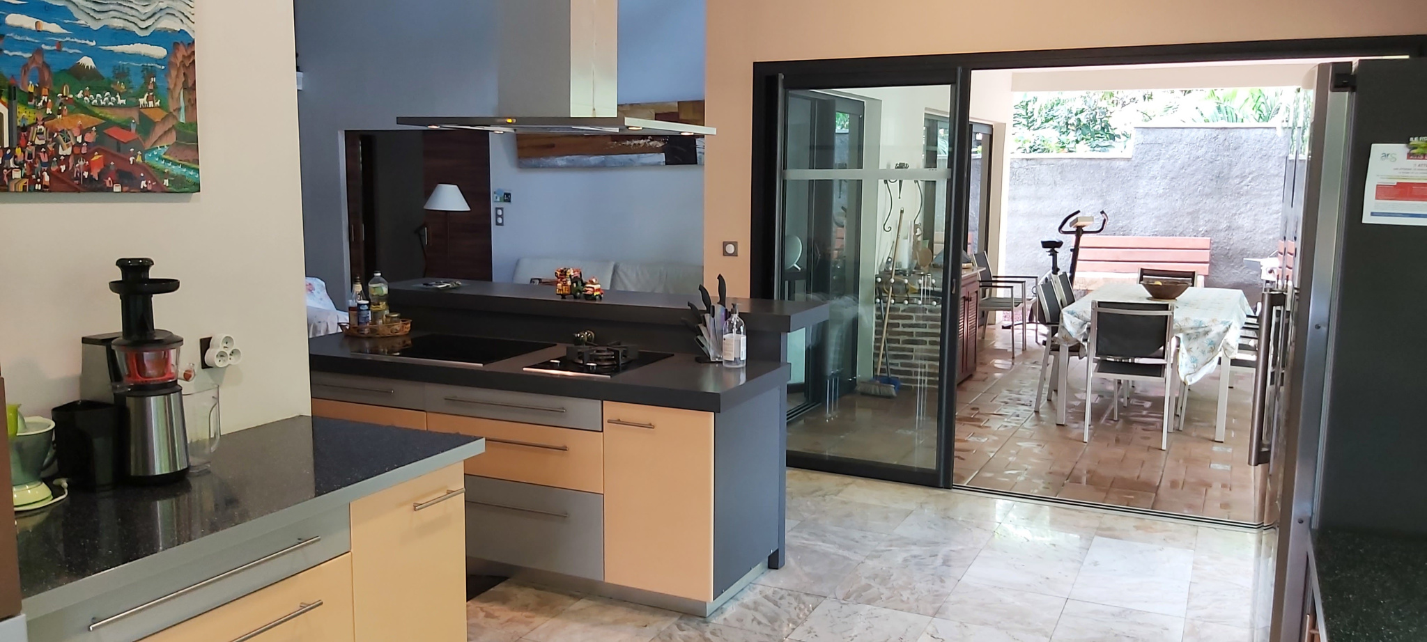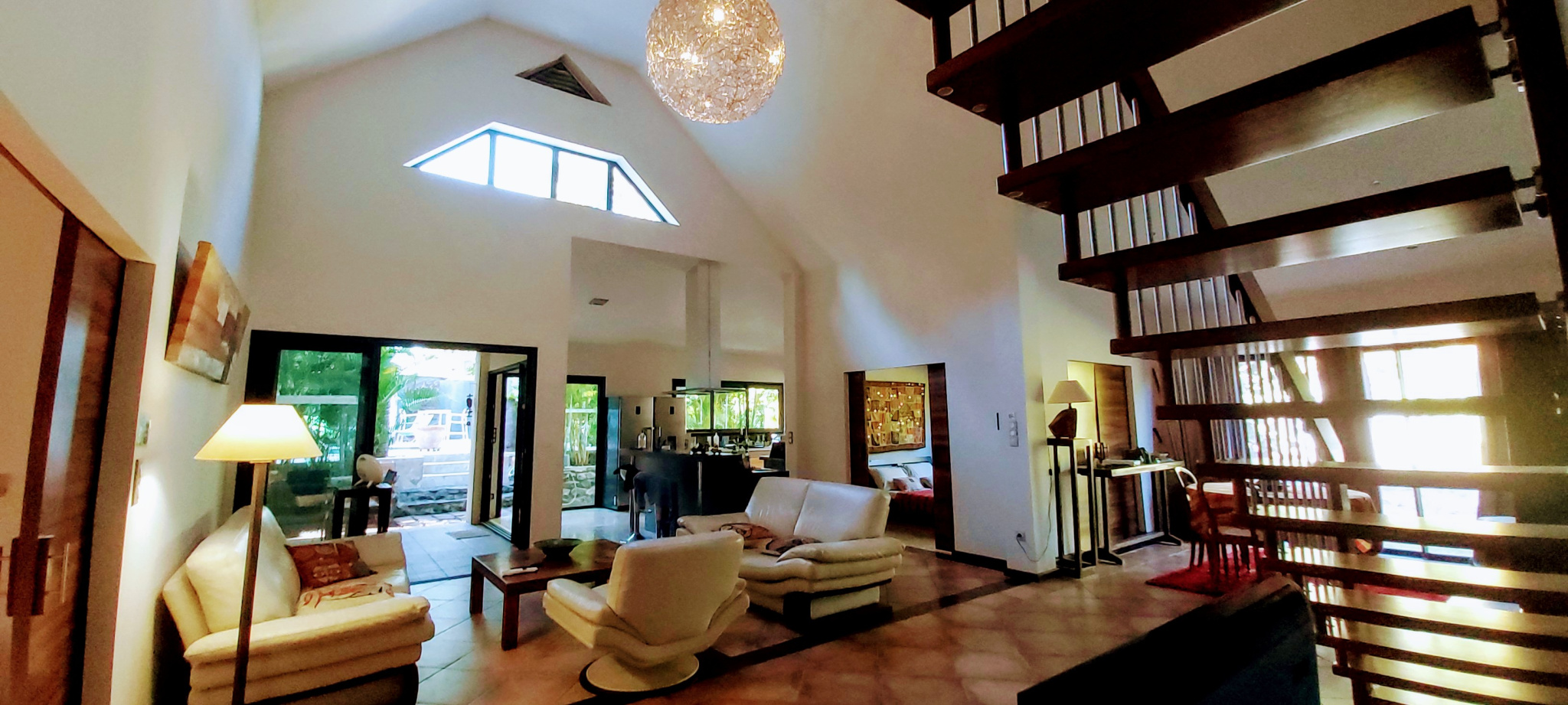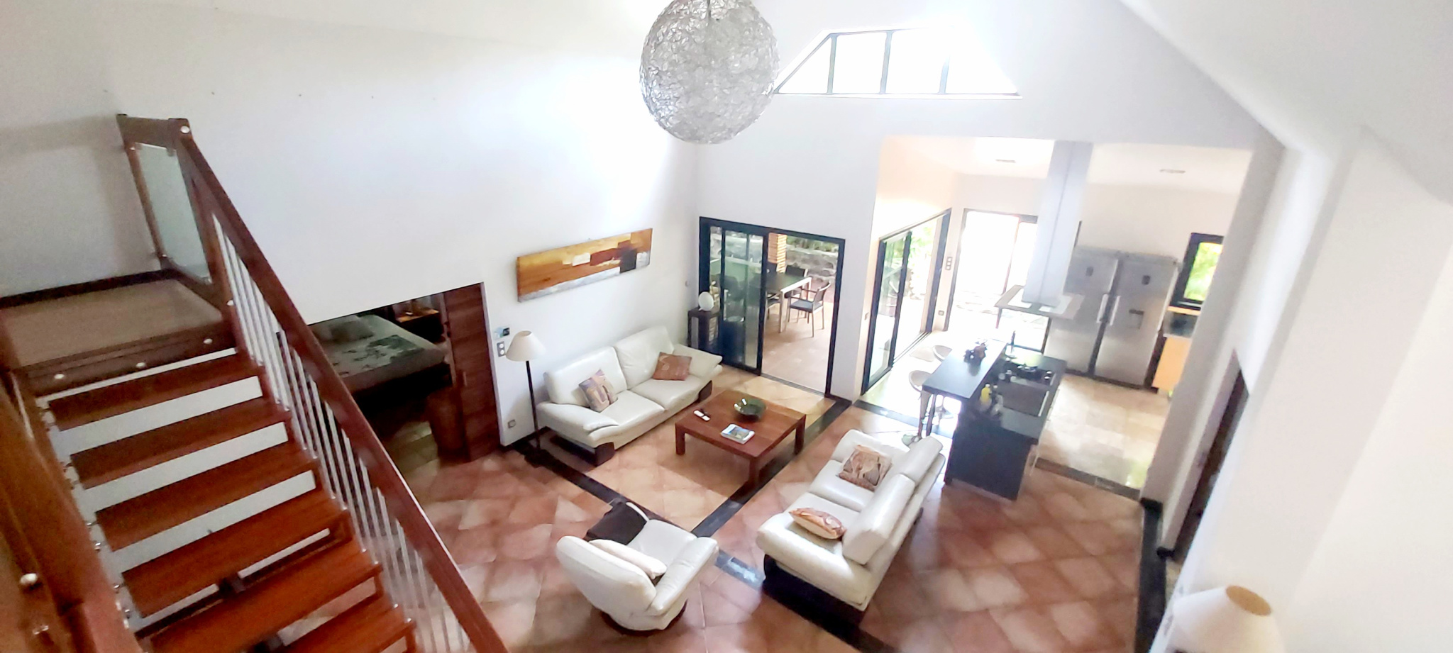 À vendre, une superbe villa de style Balinéen située à Saint-Pierre, ravine des cabris, nichée sur une parcelle de 688 m2 au calme. Cette villa principale de 4 pièces offre un grand séjour cathédrale avec mezzanine, une cuisine américaine équipée, 3 grandes chambres avec 2 salles d'eau (dont une en extérieur) pour vous offrir un confort moderne.