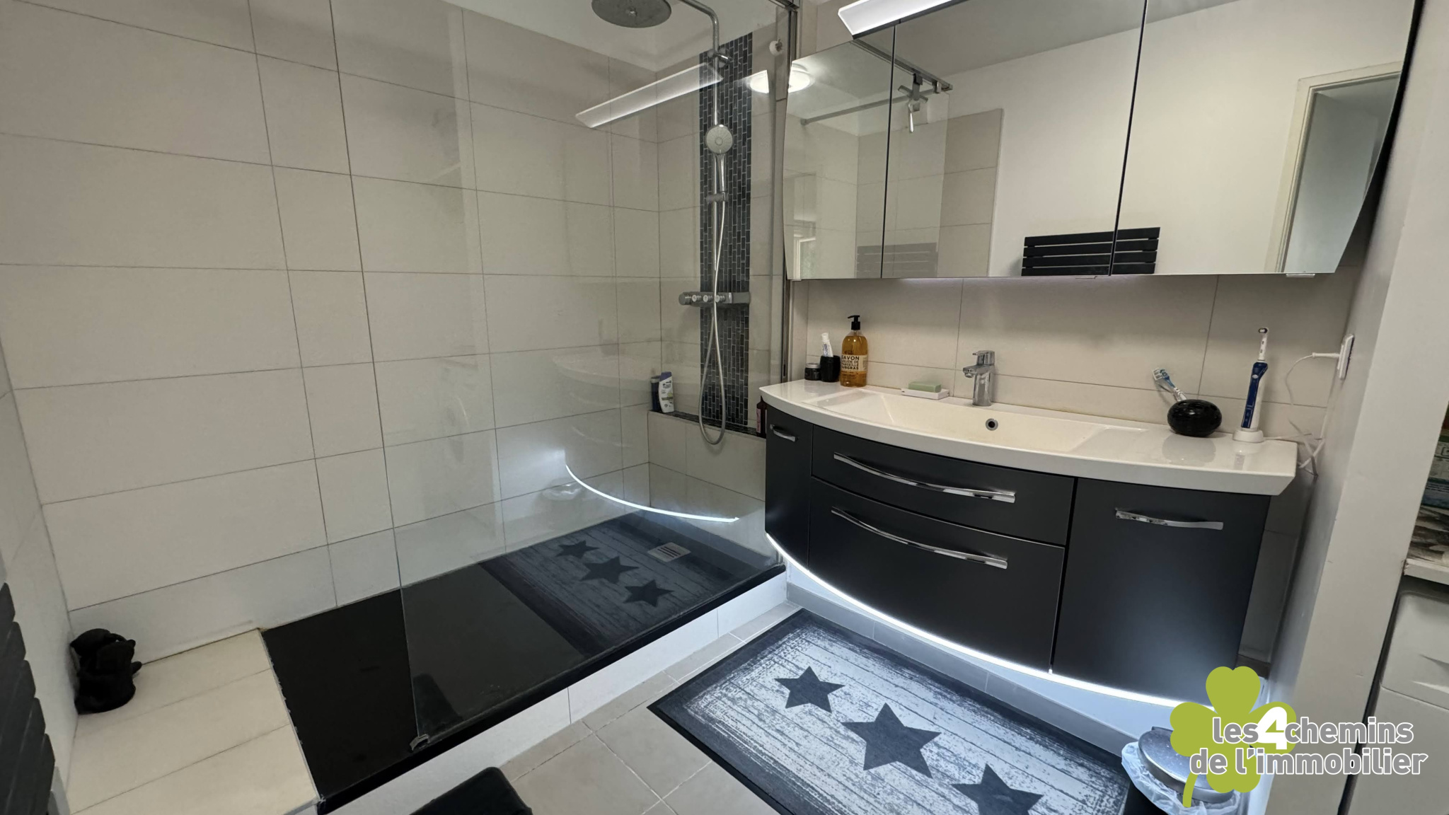L'appartement comprend une belle chambre avec placard intégré, offrant un espace de rangement pratique. La grande salle d'eau entièrement rénovée avec une douche à l'italienne, avec toilettes séparées, vous garantit confort et modernité au quotidien.