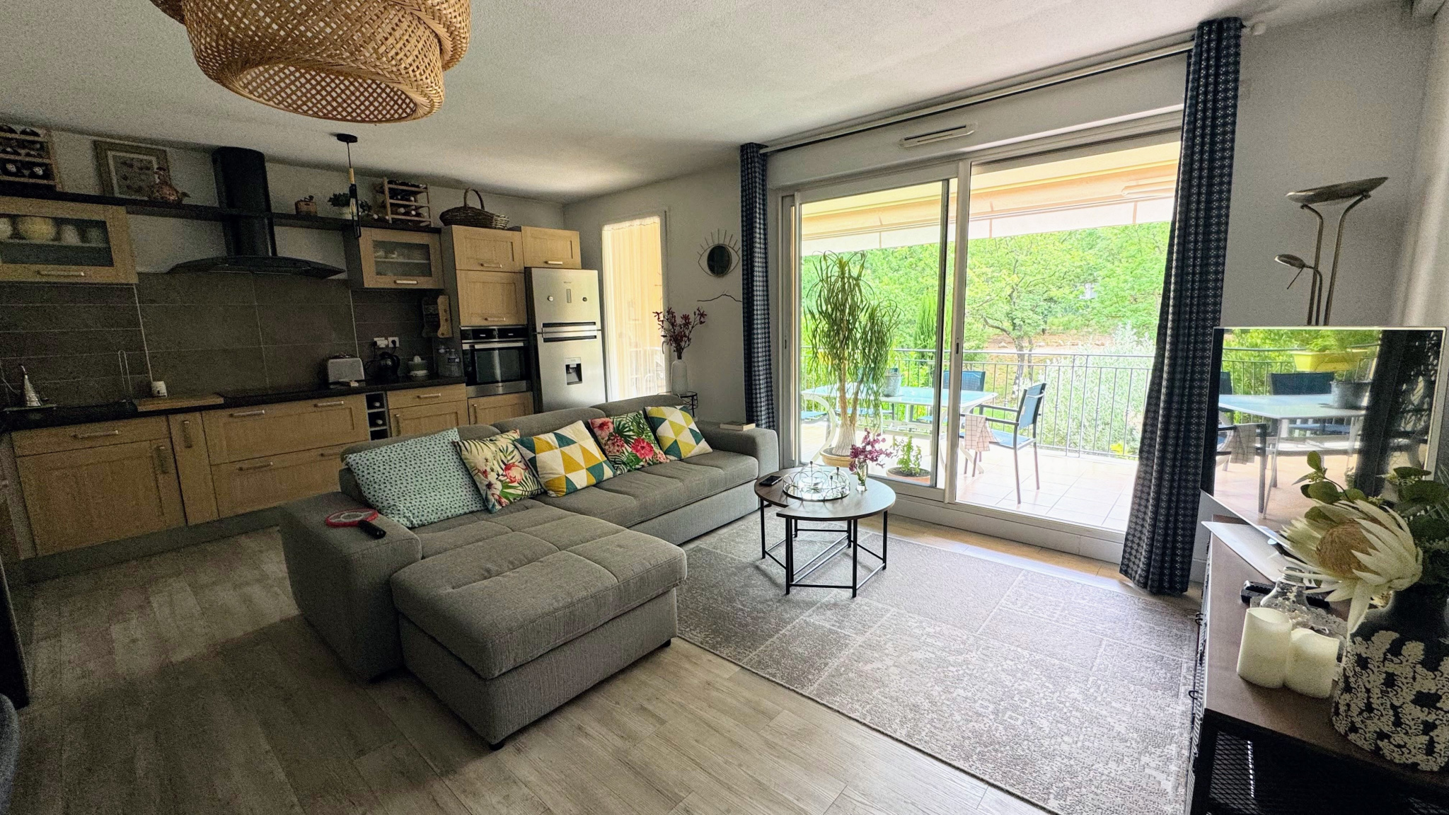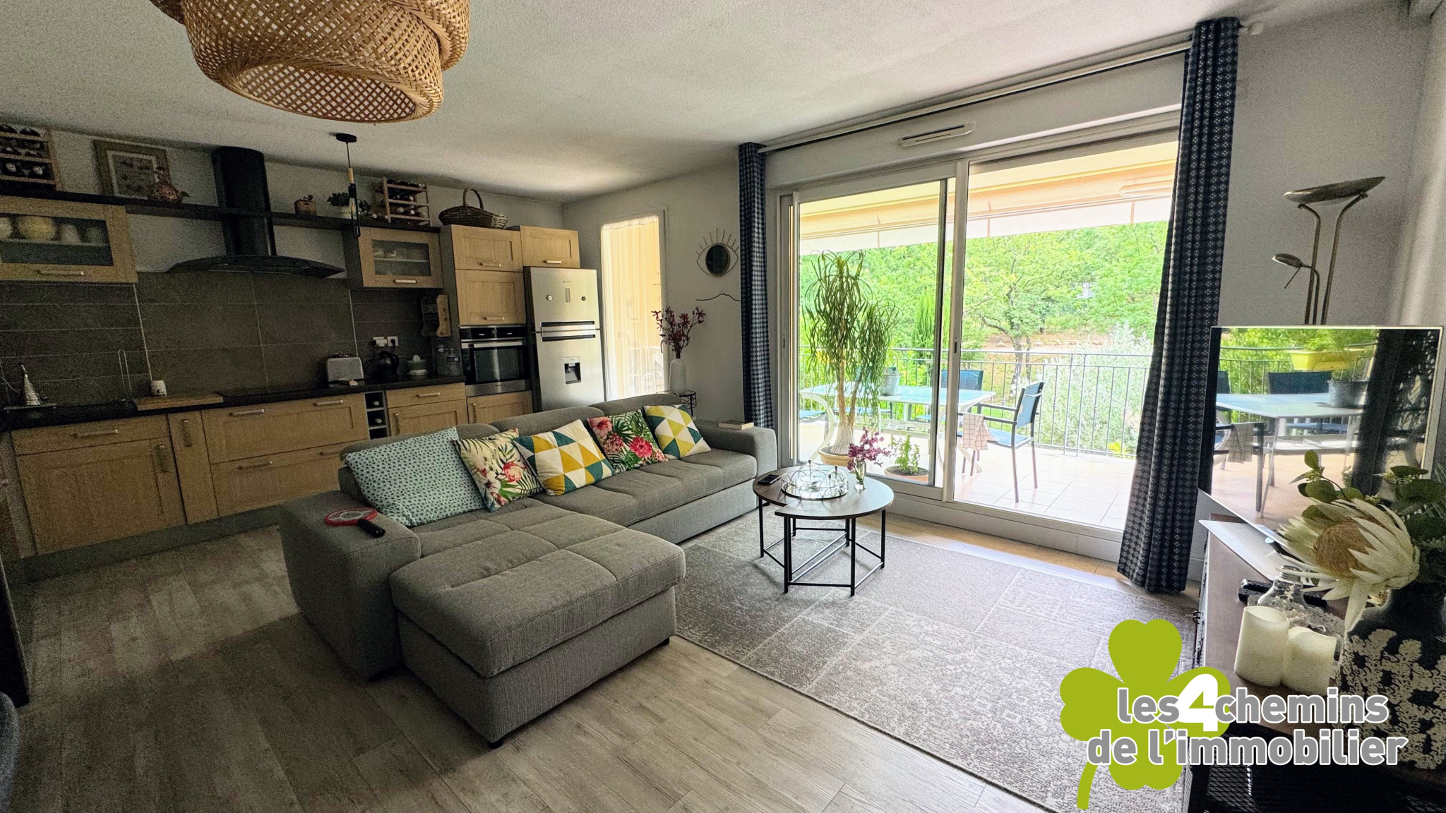 En exclusivité dans nos agences AMEPI, appartement 3 pièces de 69 m2 au coeur de Châteauneuf-le-Rouge ( 13790 ) d'environ de 69 m2, situé au centre du village. Il se compose d'un séjour avec cuisine aménagée et équipée,  une grande terrasse couverte de 15 m2 exposée plein sud vue dégagée sur la verdure au calme. Deux chambres avec placards, ainsi qu'une salle d'eau avec douche à l'italienne et un WC séparé. Une place de parking en sous-sol accessible par ascenseur et une place extérieure complètent ce bien. Prix de vente : 375 000 EUR honoraires d'agence inclus, à la charge du vendeur. Honoraires conforme à l'agence détentrice du mandat