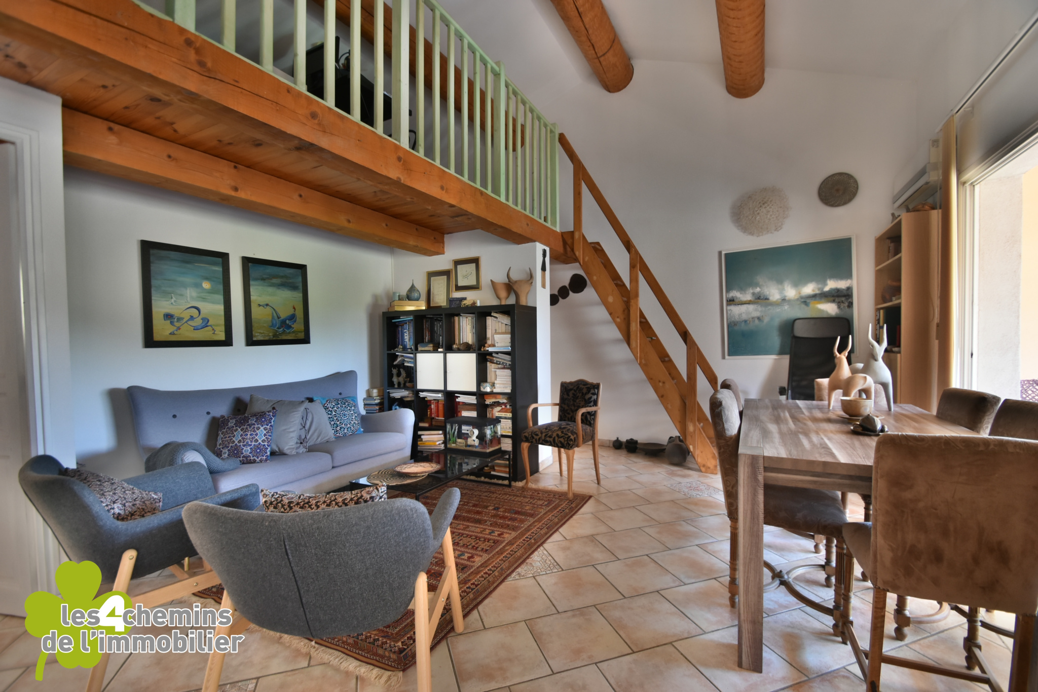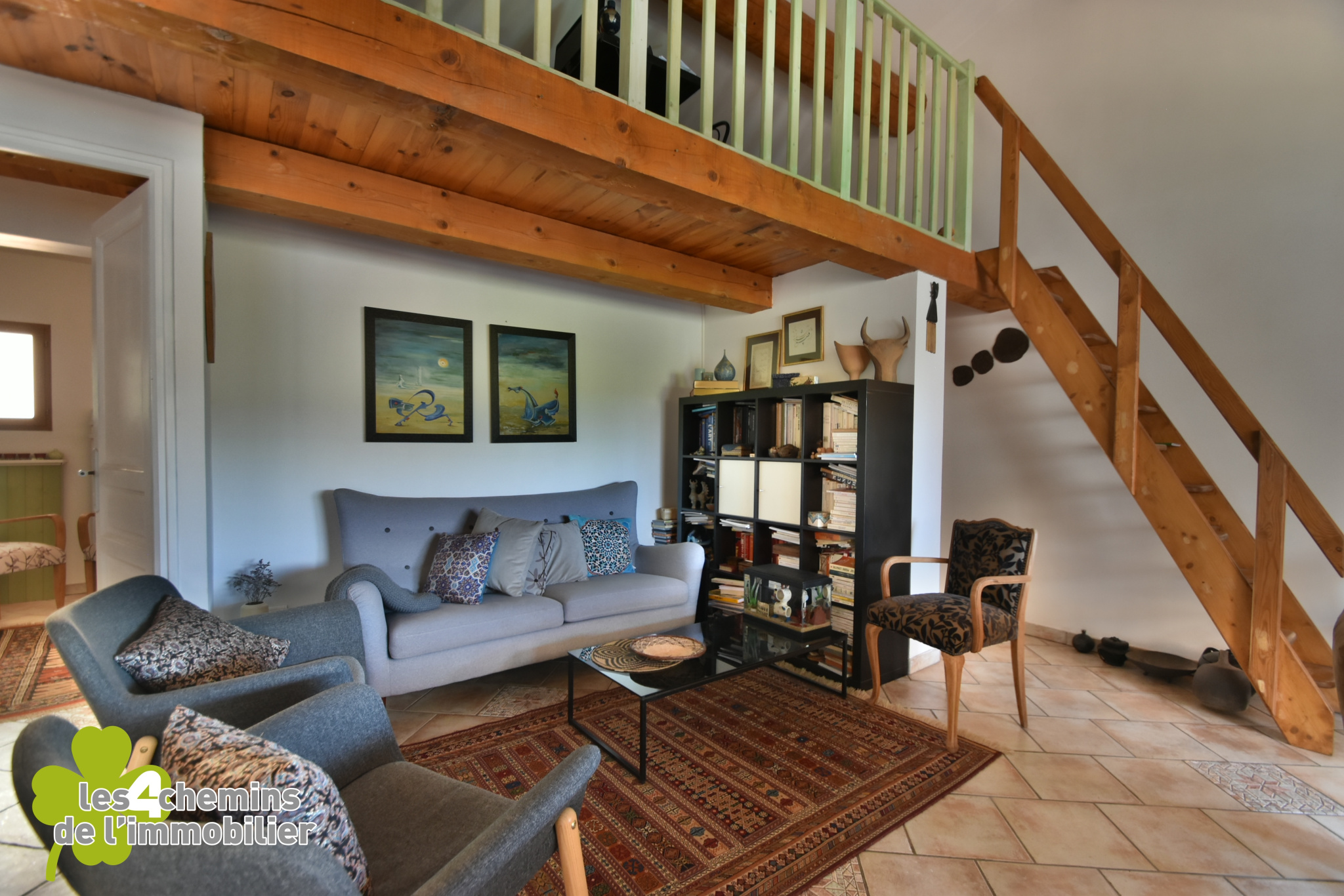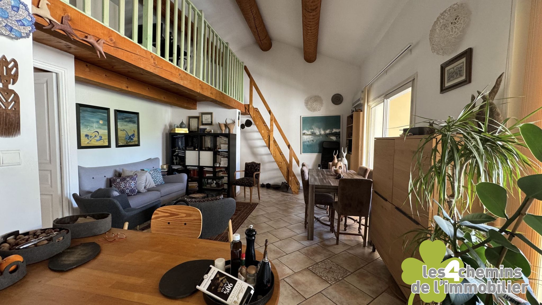 Mezzanine pratique : Surplombant le salon, une mezzanine qui peut être aménagée en bureau ou espace de loisirs selon vos désirs.
