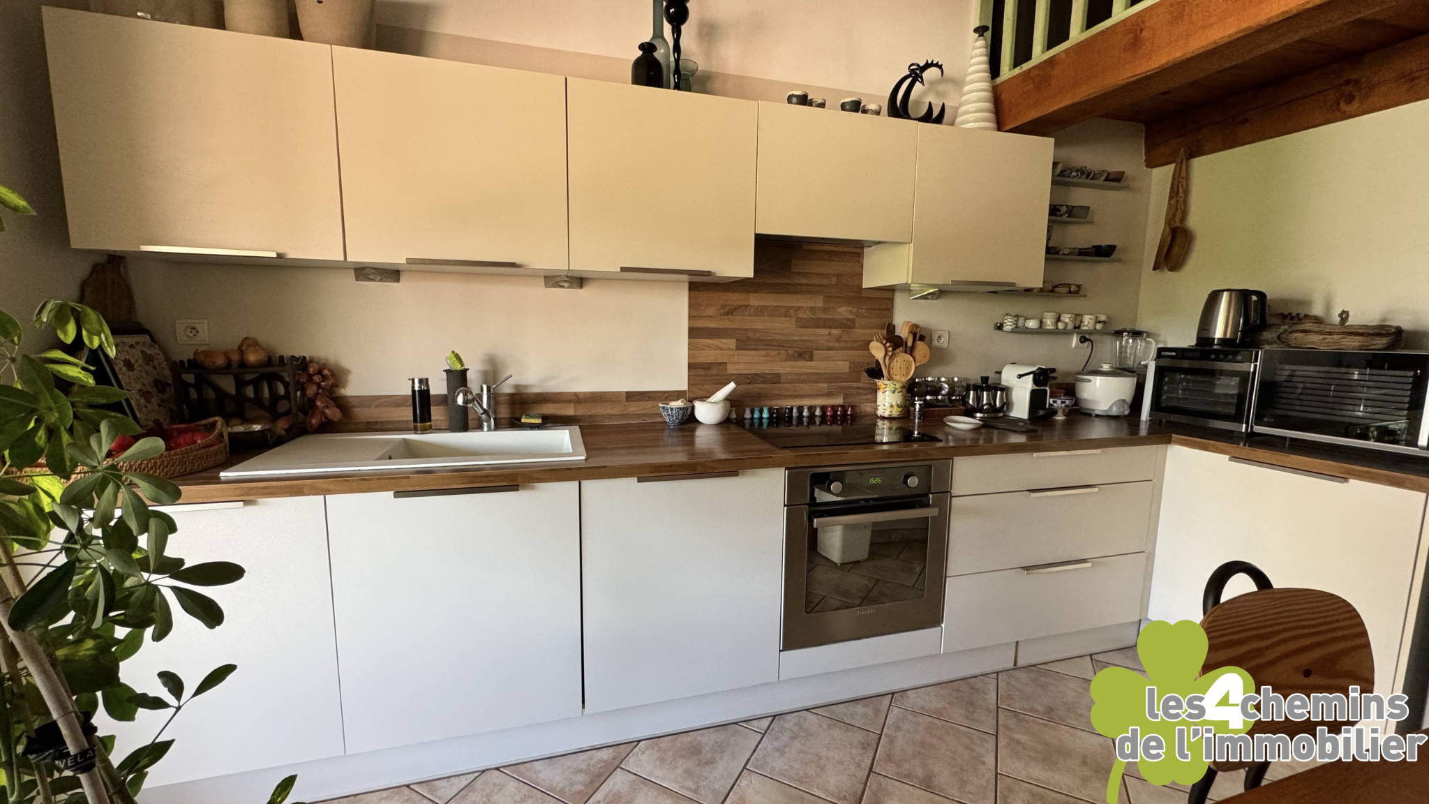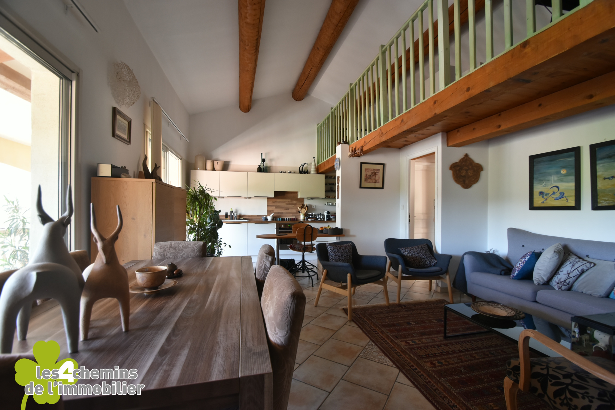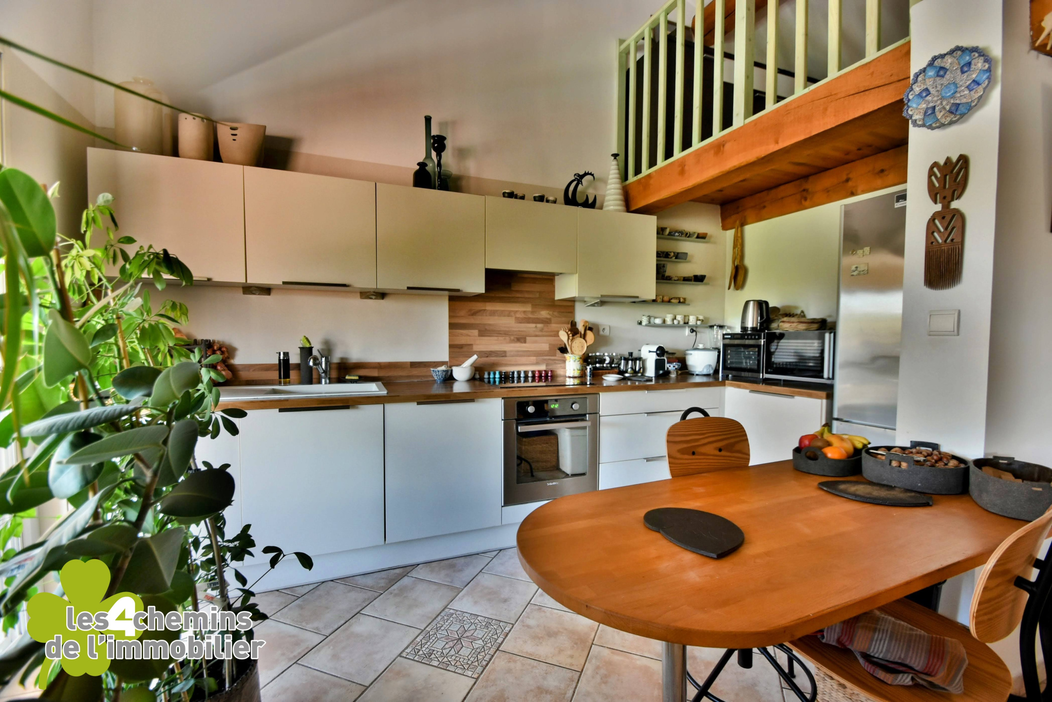 Mezzanine pratique : Surplombant le salon, une mezzanine qui peut être aménagée en bureau ou espace de loisirs selon vos désirs.