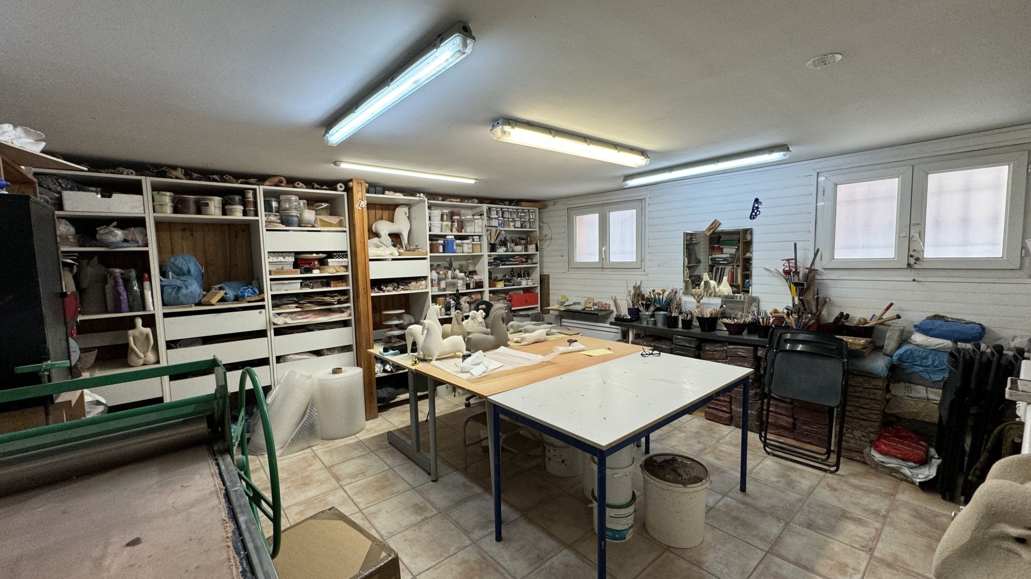 Atelier spacieux : Au rez-de-chaussée, un grand atelier offre un espace polyvalent pouvant servir selon vos envies et besoins personnels ou professionnel.