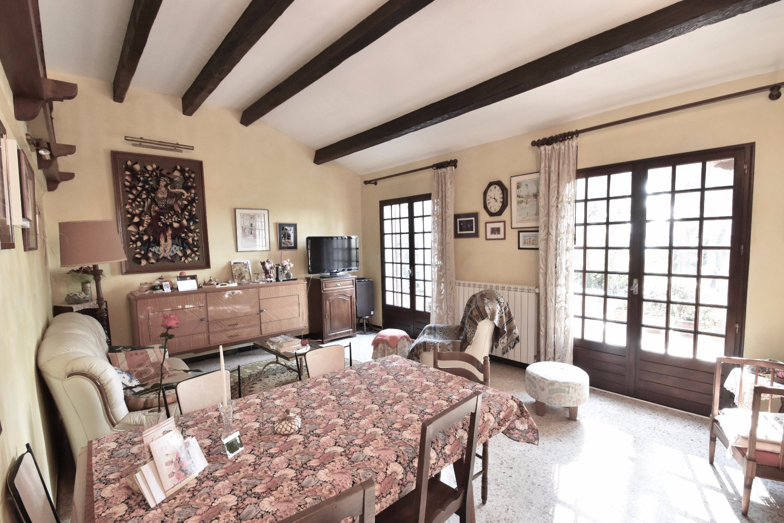 Puyloubier (13114), villa traditionnelle dans un lotissement proche du village au calme bénéficiant d'un beau jardin de 1000 m2 arboré avec une vue dégagé au sud, cette maison se compose d'un séjour avec cuisine indépendante aménagée, une chambre en rez-de-chaussée avec salle de bain, une chambre à l'étage avec solarium bénéficiant d'une belle vue dominante sur la vallée au Sud, attenant à la maison un garage. Au calme, à environ 15 minutes du village à pied, arrêt de bus a proximité. Travaux de rafraichissement a prévoir. Possibilité d'agrandissement de la maison. Mandat 1732 Prix : 357000 EUR honoraires à charge vendeur inclus. A voir rapidement !!